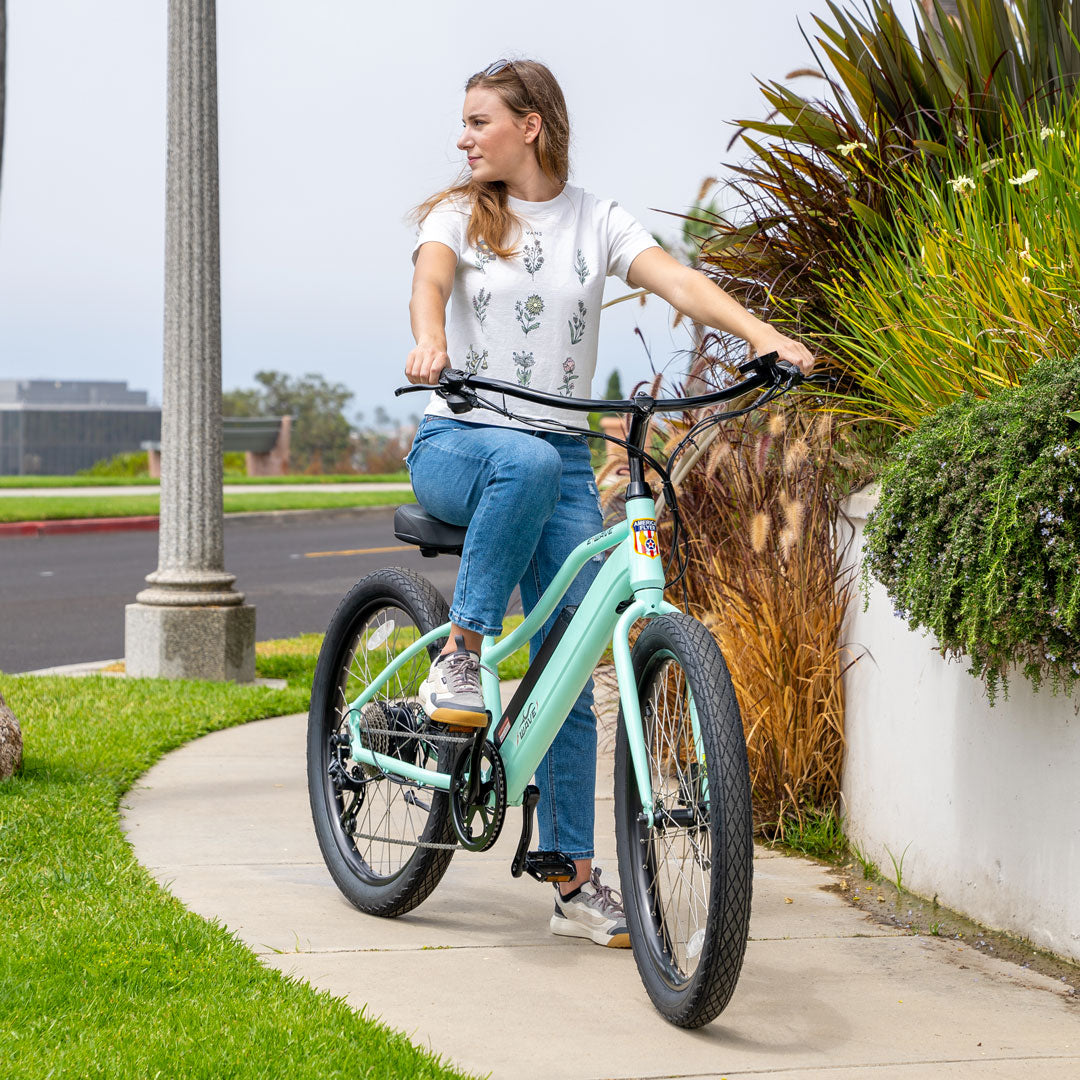 With a 500-watt Bafang Hub-drive motor, pedal-assist, throttle capabilities, and your option of a 10ah or 14ah battery, you can cruise down your local boardwalk, or adventure down the entire coast!